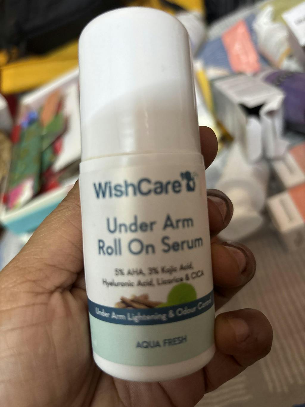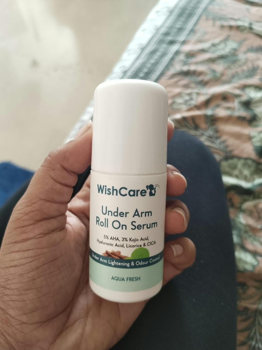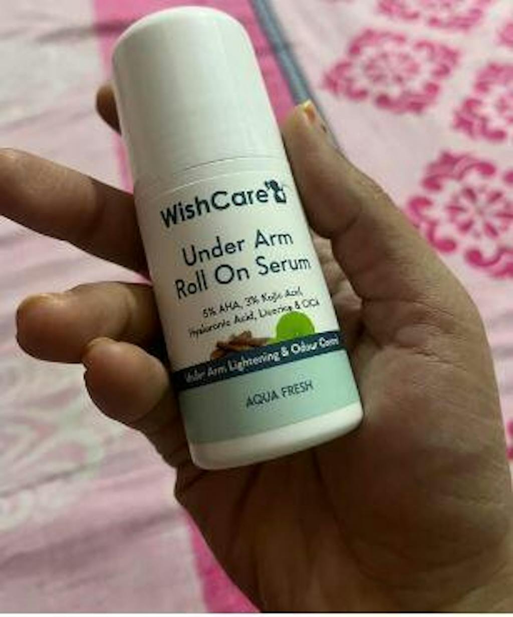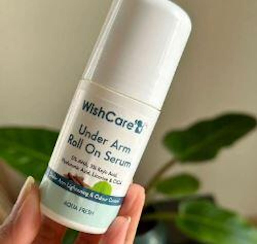 A: WishCare underarm roll-on is enriched with AHA, kojic acid, niacinamide, etc. These help reduce pigmentation & tan and also give you brighter and lighter underarm skin. The quick-absorbing formula of the roll-on keeps you feeling fresh & nonsticky.